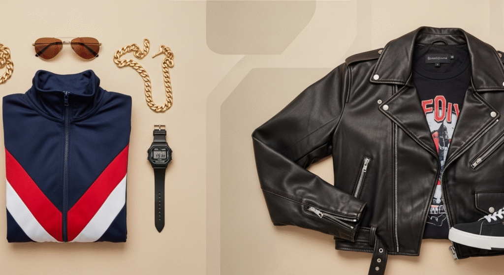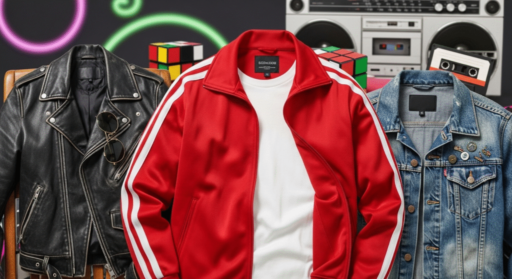 Tracksuits are one of the most recognizable 80s outfits for men, providing each comfort and bold aesthetics.