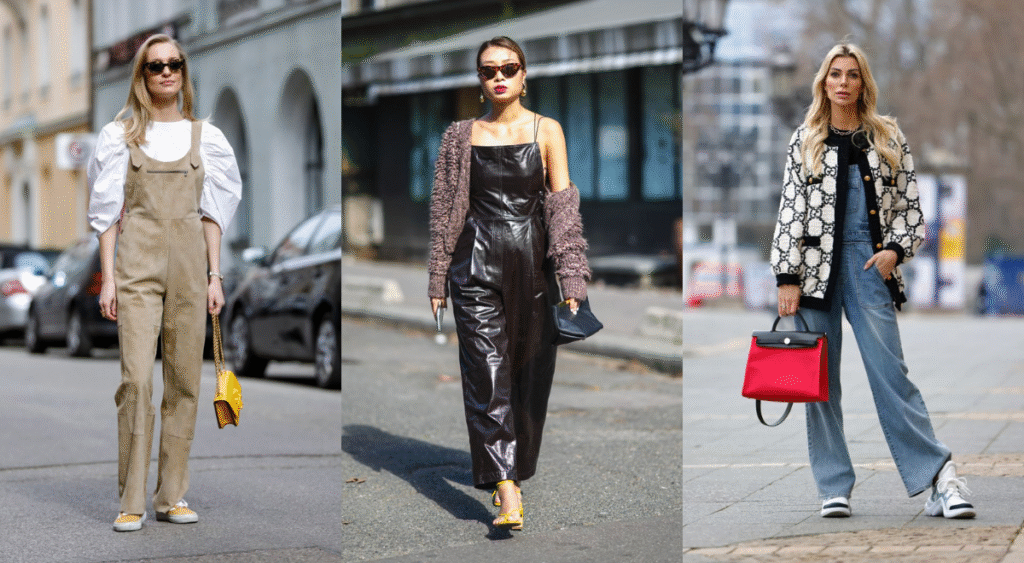 The 90s outfit for women relied on denim as its fundamental element. The combination of denim bib overalls and baggy jeans creates street style pieces that define effortless fashion yet still serve as essential items for contemporary wardrobes.