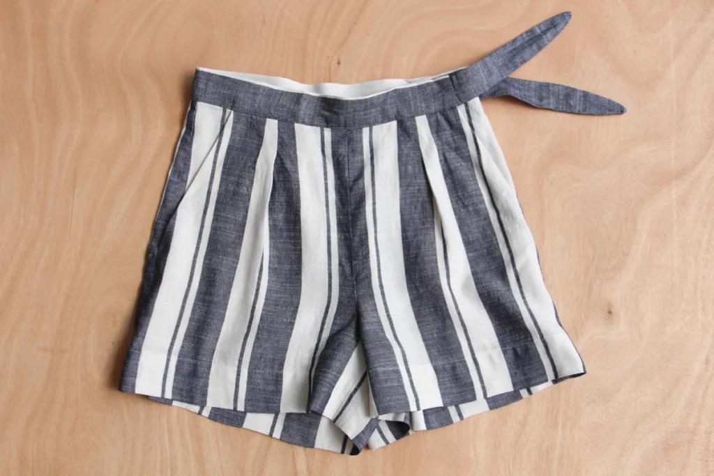 The paperbag waist shorts are beautiful because they are so flexible and fit anyone. Yet to present them a smooth appearance, it’s far more important to choose the right cut and cloth.