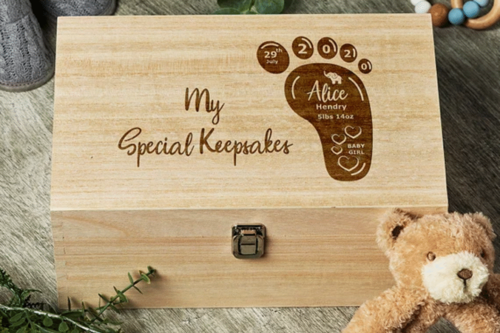 Memory boxes are traditional baby gifts made of wood or engraved where the first milestones are kept.
