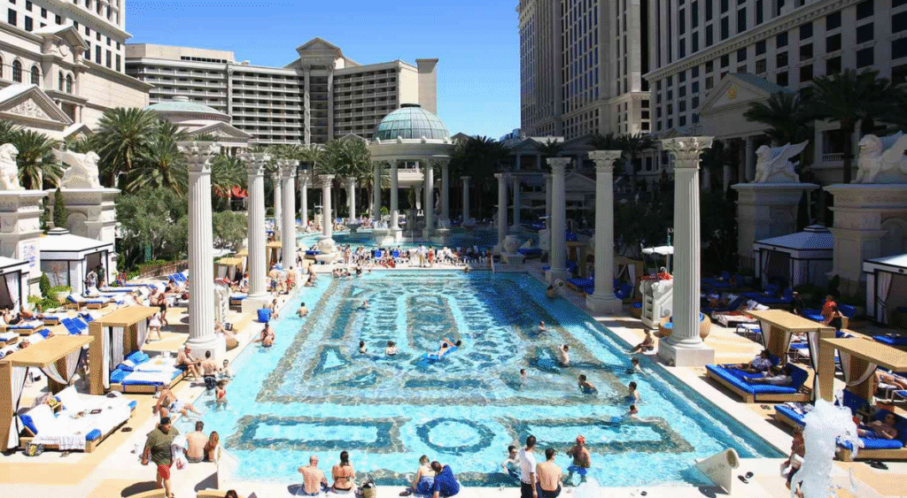 This swimming pool is an ideal place to socialize and listen to summer tunes. It provides a twist and uniqueness to the Las Vegas Summer Getaway Package.