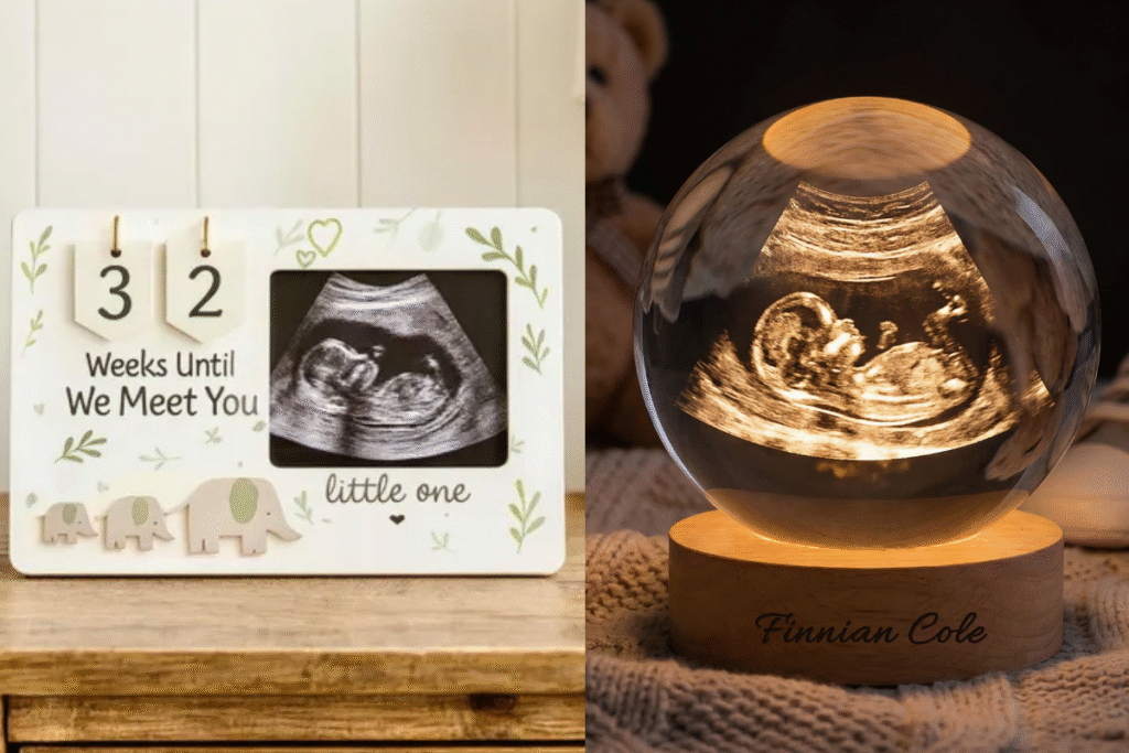 - Custom baby ultrasound crystal ball lamp – Visualize making a baby ultrasound a shining memento. This type of gift turns a memorable experience into a beautiful night lamp, and it is among the most special of the pregnancy-gifted ones.
