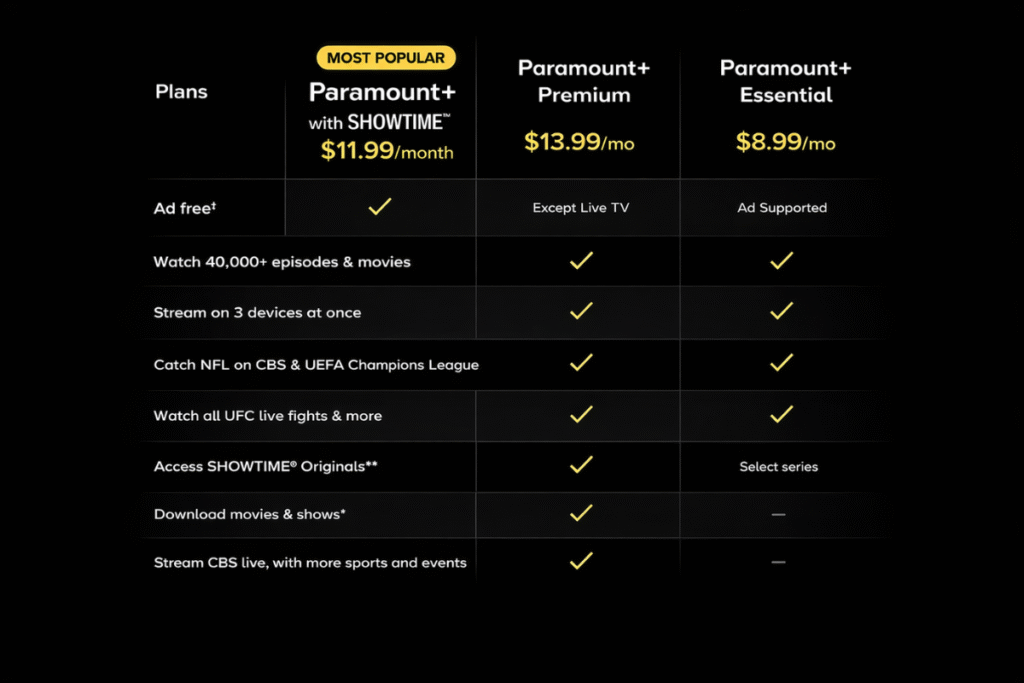 Instead of requiring separate subscriptions for different sports, Paramount+ simplifies access through two main plans, like Essential and Premium. Both tiers provide live programming and sports coverage, allowing fans to stream live NFL football and watch live UFC events within the same platform.